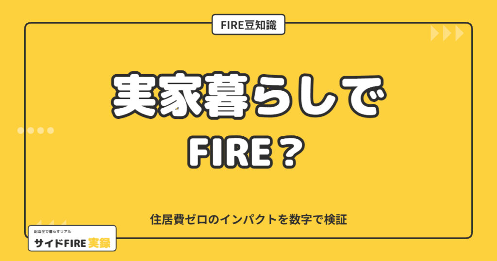 実家暮らしならFIREは加速する?住居費ゼロのインパクトを具体的な数字で検証。年収350万・住宅ローン月4万でサイドFIREした筆者が、住居費を抑える効果と実家暮らしの注意点を体験ベースで解説します。 -