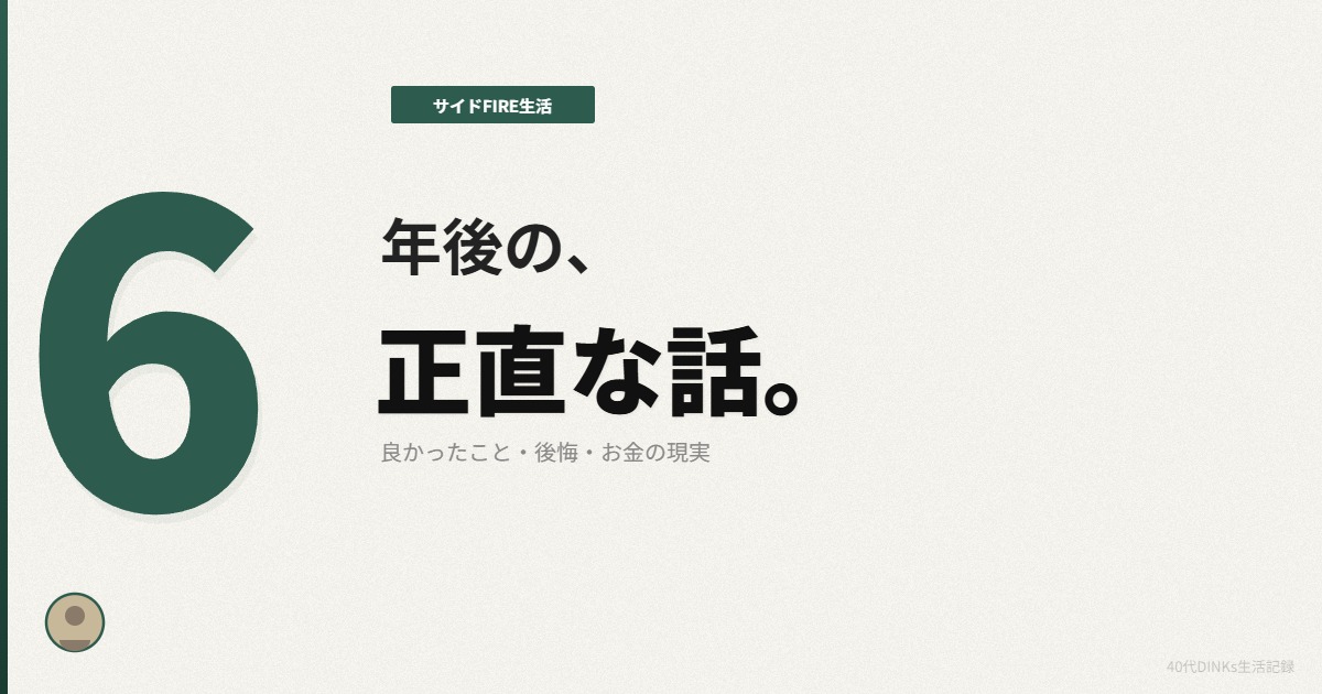 ネットで「FIRE 後悔」「サイドFIRE やめた」と検索している人は多い。実際に私も、FIREを決断する前は不安で何度も検索した側の人間だ。だから今度は、6年間やってみた側として書いてみたいと思う。