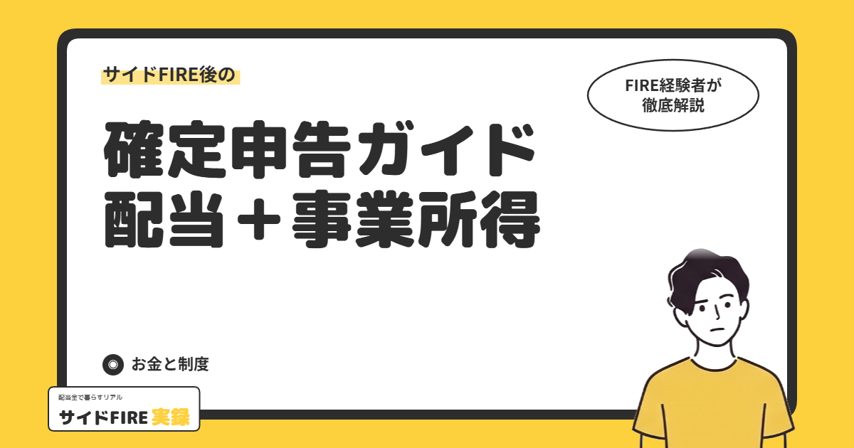この記事では、サイドFIRE後に配当所得と事業所得の両方がある場合の確定申告について、私が実際に経験したことをもとに整理しています。税額の細かい計算ではなく、「仕組みとしてどうなっているのか」を中心に書きました。